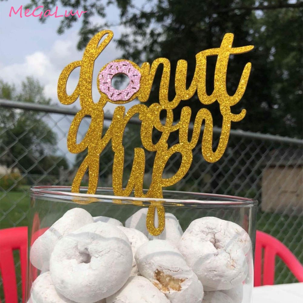 Amazon Com Pink Donut Happy Birthday Cake Topper Glitter Party Decorations For Girls Kids Donut Grow Up Themed Birthday Party Toys Games